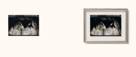 Select a frame style and mat. Personalize it with a brass plate, mat caption, or hidden story pocket.